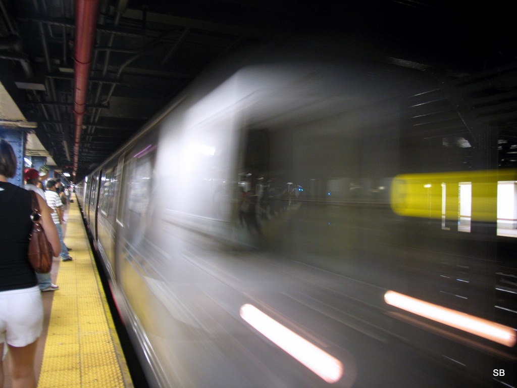 Метро. Какой-то черный вошел в вагон, поставил на пол бумбокс и стал танцевать брейкданс, в то время как поезд ехал от станции к станции. Люди в вагоне выглядели счастливыми. Большинство из них слушали айпод. И при этом подпевали)