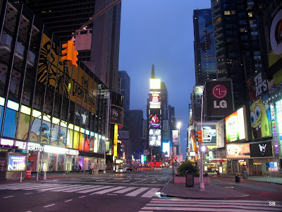 Было темно. Выходишь из станции метро и сразу попадаешь в какой-то жилой квартал. Как будто действительно из подземелья.Жутко хотелось спать, но еще сильнее хотелось поехать туда, к небоскребам, чтобы дотронуться до них и задрать голову вверх, открыв рот.Я оставил свои вещи в комнате, и выбрал на карте метро самое знакомое название - Time square.